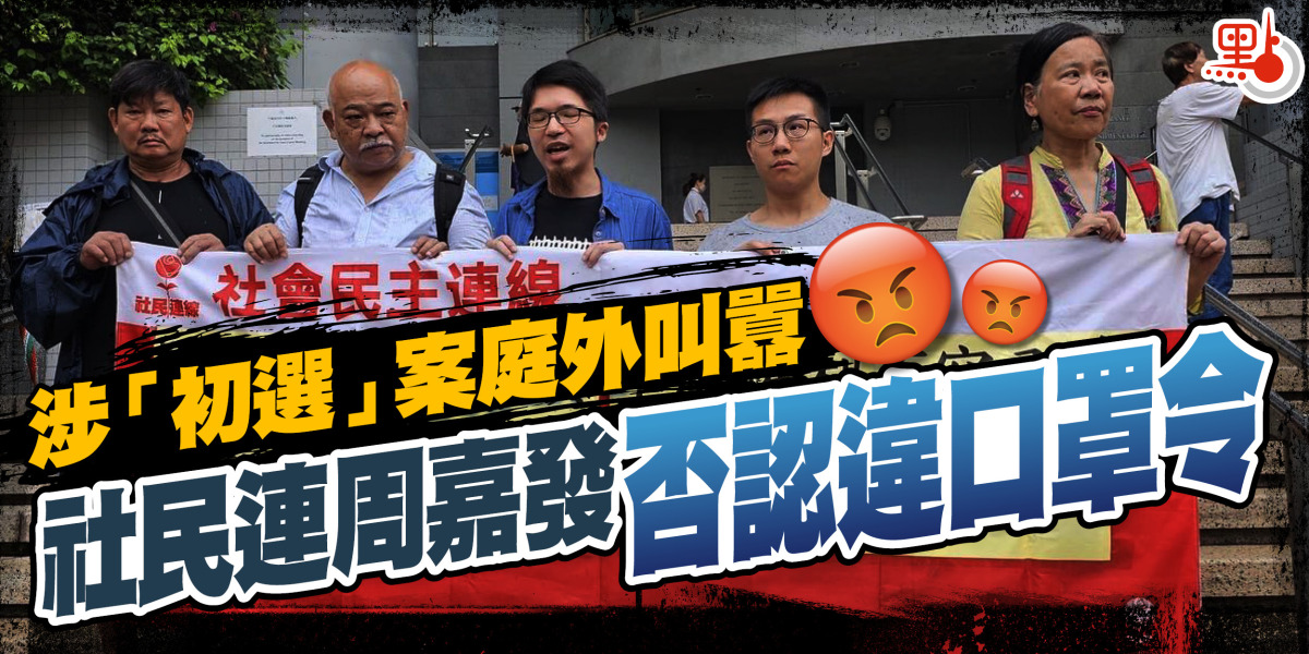 攬炒派47人涉非法「初選」案,今年2月初開審當日,亂港組織「社民連」成員到西九龍法院大樓外叫囂掀混亂。社民連外務副主席周嘉發被指使用「大聲公」時拉下口罩,被票控違反口罩令,案件昨天在九龍城裁判法院審理。