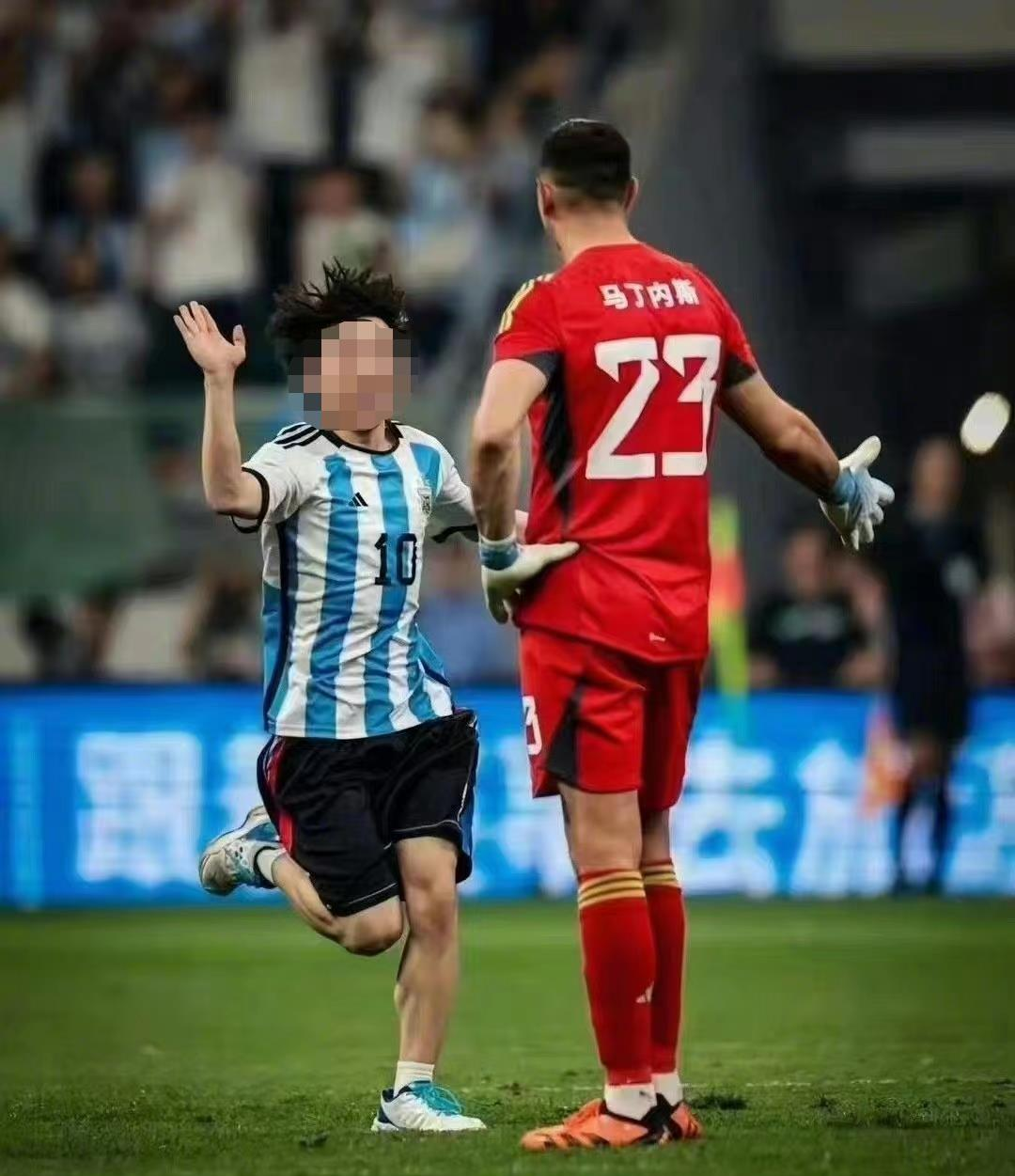 【點新聞報道】昨日(15日)晚上8點,阿根廷「球王」美斯(內地稱「梅西」)率領的世界盃冠軍阿根廷隊在北京工人體育場與澳洲隊進行友誼賽,阿根廷以2比0擊敗澳洲,比賽吸引了大批內地球迷入場觀看。不過在比賽過程中,一名內地男球迷衝入球場擁抱了美斯,並和阿根廷隊門將馬天尼斯擊掌,隨後狂奔大半場,最終被安保人員帶離,引發網絡熱議。