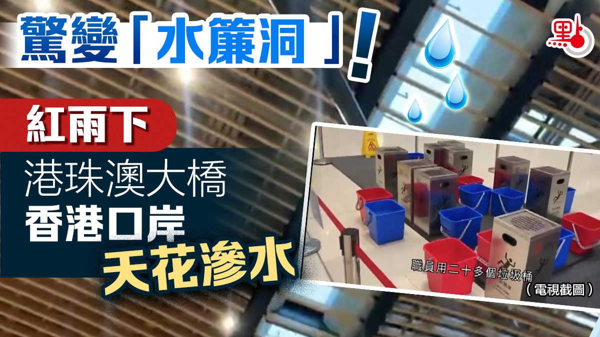 【點新聞報道】天文台今日(17日)下午2時05分發出紅色暴雨警告信號,大雨傾盆而下。有讀者報料指,紅色暴雨警告下,港珠澳大橋香港口岸出境大堂天花滲水,水流從天而降形成一道水簾。
