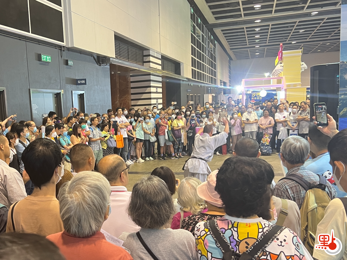 今年旅遊展的主題為「邁向全面復蘇」。今次展覽,國家文化和旅遊部組織了多省市文化和旅遊部門及企業參展,他們帶來了豐富的民俗表演。今日下午13時30分,少林功夫表演吸引了不少市民圍觀,許多市民高舉手機期待能夠拍到演出的精彩時刻。各地旅遊業現正穩步恢復,這場少林寺帶來的表演,不知是否會讓市民期待到河南一遊。
