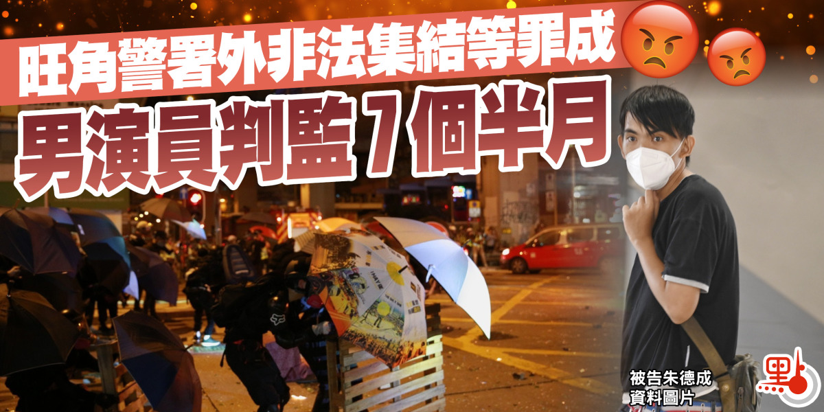 旺角警署附近在2019年9月29日有大批示威者集結,並觸發衝突,多人被捕。一名報稱演員的男子較早前被裁定非法集結及在公眾地方管有攻擊性武器罪名成立,昨日在西九龍裁判法院被判入獄七個月15日。