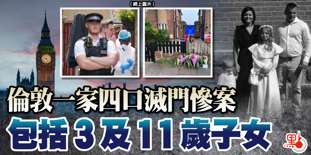 英國倫敦西部的漢斯洛(Hounslow)發生滅門慘案,一家四口被發現陳屍寓所,死者包括兩名兒童,警方認為涉及謀殺及自殺。有鄰居對案件感到震驚,指涉事家庭非常友善,且數天前還見女戶主在花園跟子女開心玩耍,豈料幾日後卻傳來噩耗。