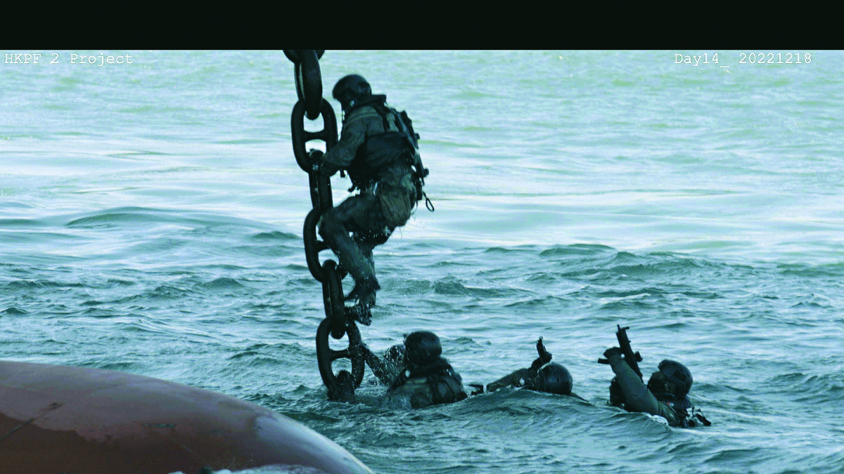 林超賢又提到貨輪拍攝場景,因拍攝之前幾日,天氣惡劣,而拍攝的貨輪亦只可供拍攝一天,無法改期,更遇上香港全年最寒冷的幾天,氣溫只有6度,飛虎隊潛水員更要長期在低溫海水中參與拍攝,難度極高,可幸在海陸空多支部隊、船公司及其他參與機構努力協調下,總算順利完成拍攝,用一天時間成就宣傳片其中一場重頭戲。