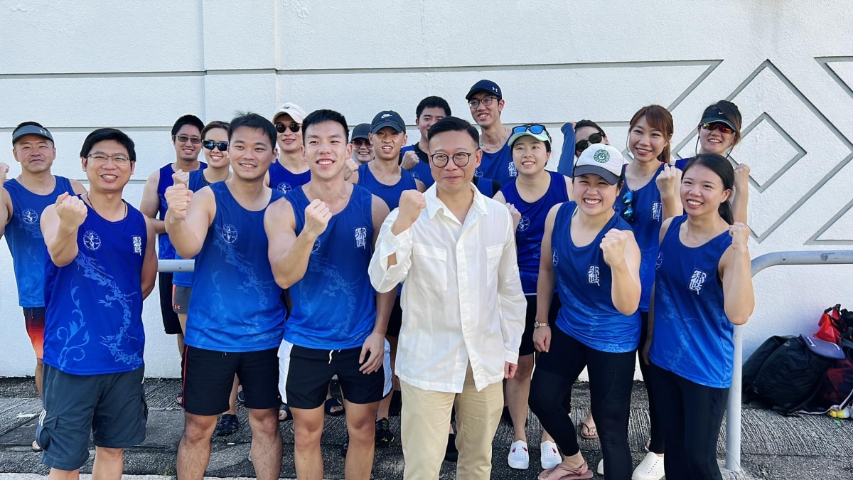 平日穩重嚴肅的張國鈞,在帖文標籤展露隨和風趣一面,以「在大大的龍舟裡面划呀划呀划」、「划大大的水花給大大的誇」鼓勵同事加油打氣。