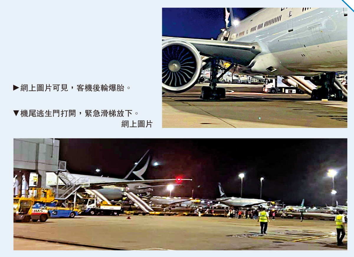 機管局表示,凌晨零時20分接獲報告,據報國泰航空一班前往洛杉磯的客機,起飛時因訊號異常,中止起飛,並返回停機位,隨即打開緊急逃生梯,進行緊急疏散,消防隨即到場支援,救護員即場治理受傷旅客。