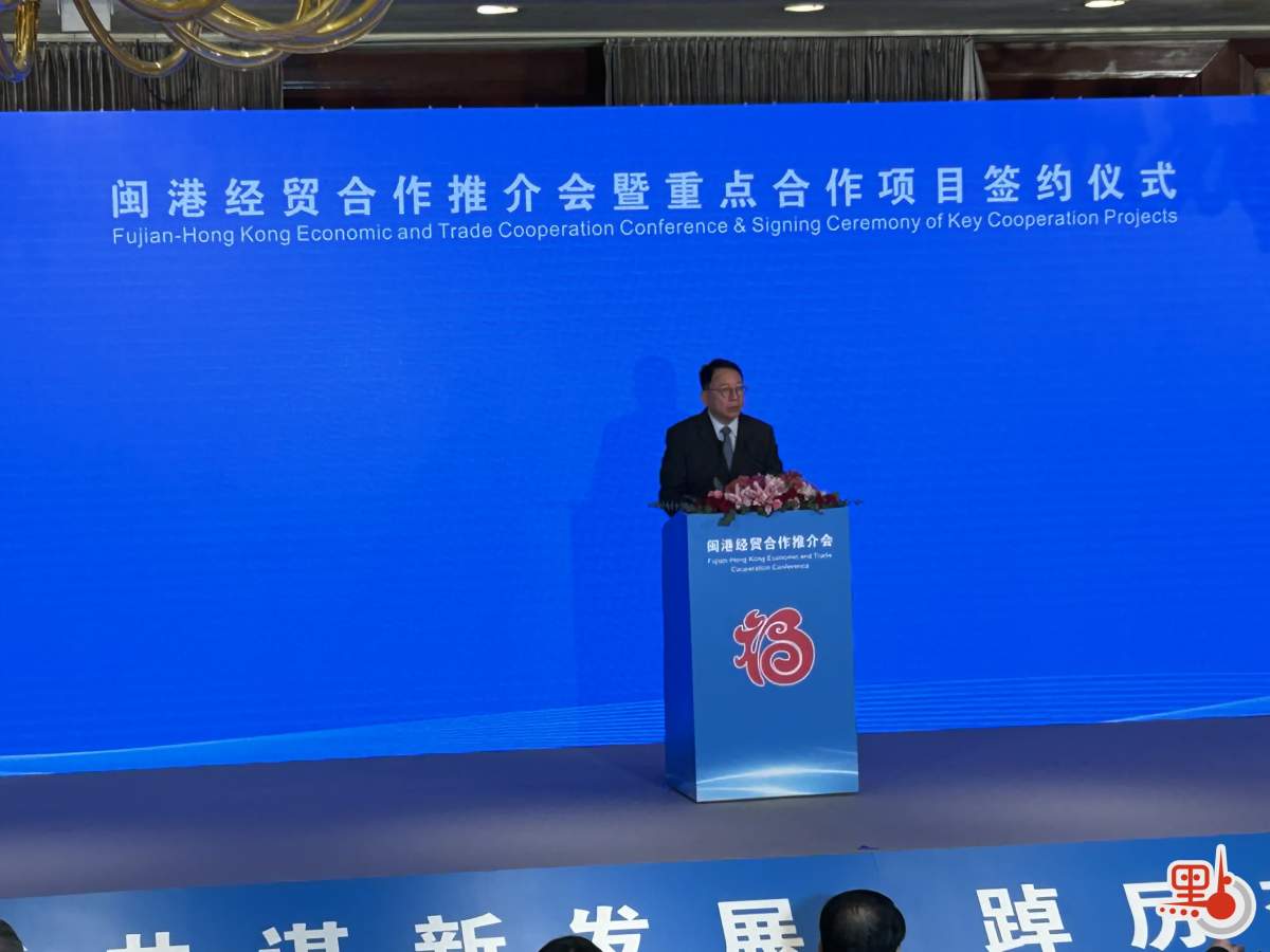政務司司長陳國基表示,香港與福建同處泛珠三角區域,經貿關係密切,文化淵源深厚。香港是福建最大的外資來源地,不少香港的企業家都參與福建的發展。香港有接近130萬居民源自福建,當中不少是工商界的領袖和專業人才,多年來為香港的繁榮穩定作出貢獻。他提到,特區政府重視閩港合作,早於2012年在福建成立聯絡處,作為兩地之間的溝通合作橋樑,至今已經舉行了三次會議,明日將舉行第四次會議。他相信,兩地交流合作將會邁上更深層次、更廣領域、更高水平,全面貫徹優勢互補、互利共贏的原則。