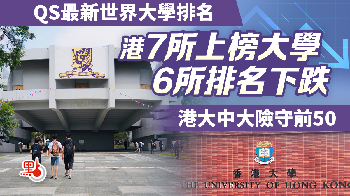 國際高等教育評鑑機構QS昨日(27日)凌晨公布2024年度世界大學排名榜。今年排名採用新評分方法,加入可持續發展、就業成果及國際研究網絡三個標準,並減少原有學術聲譽、師生比的佔分比重。在新安排下,今年香港7所上榜大學有6所排名下跌,其中以第26位的香港大學跌幅最高,總名次較去年低五位,不過,若單以亞洲計,港大則由第5位升至第4位。