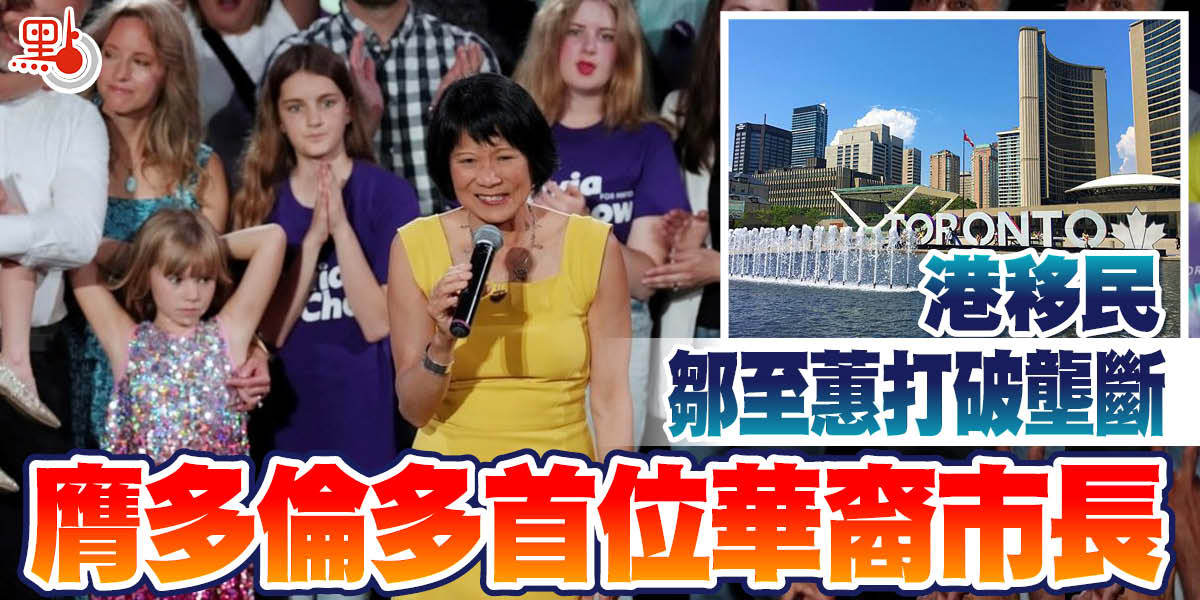 加拿大第一大城市多倫多周一舉行市長補選,結果選出歷來首位華裔和非白人市長,來自左翼新民主黨的鄒至蕙以奪得超過37%選票,擊敗前副市長貝安娜及前警察首長桑德斯當選。當地華人對多倫多繼溫哥華後選出華裔市長極感興奮,揚言樂見華人終能打破白人壟斷市長選舉的局面。
