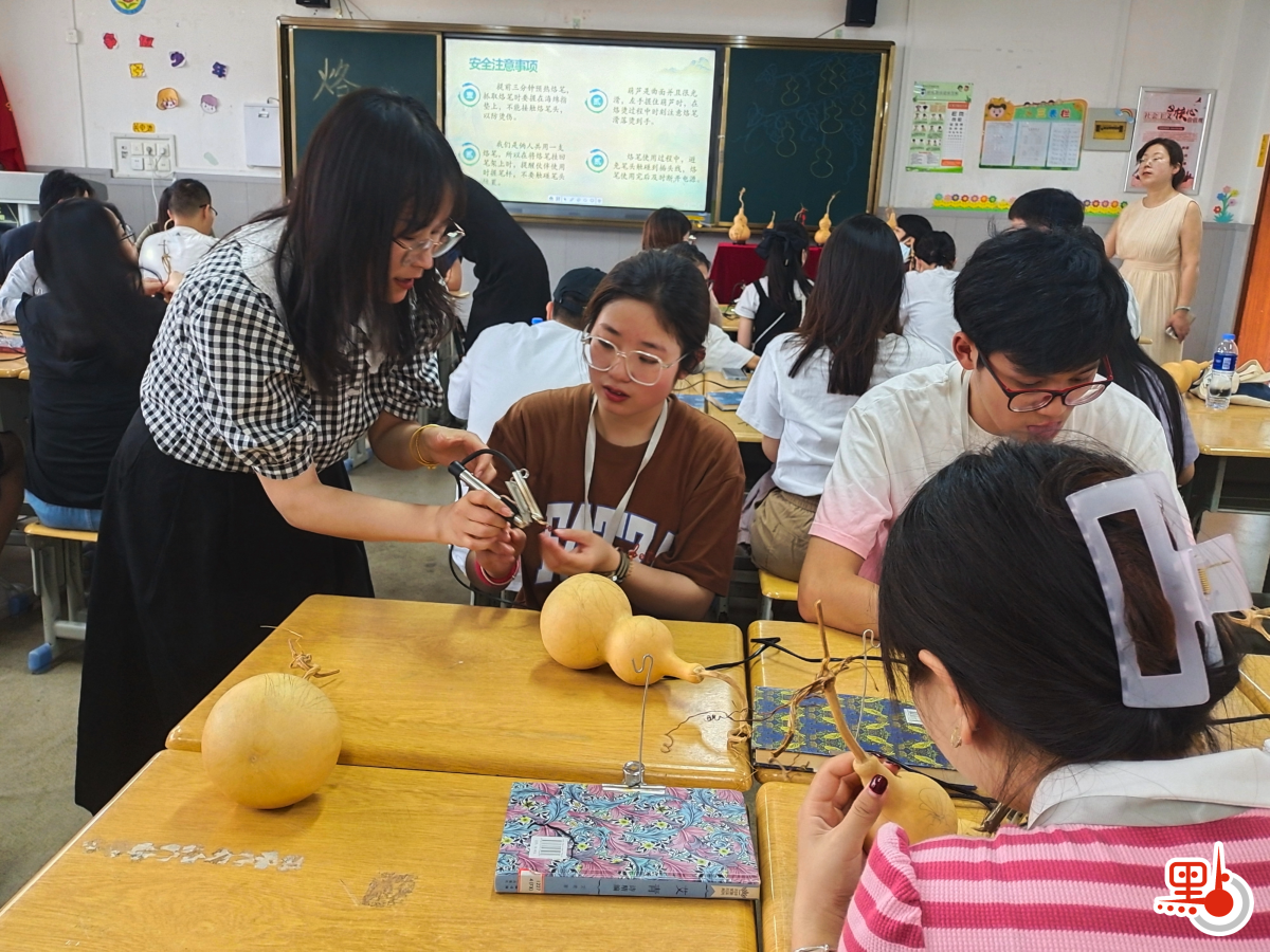 挑選到畫着自己喜歡圖案的葫蘆,營員們拿起烙畫筆,學着視頻中的工藝步驟,小心翼翼地在葫蘆上熨出烙痕作畫,完成屬於自己的作品。