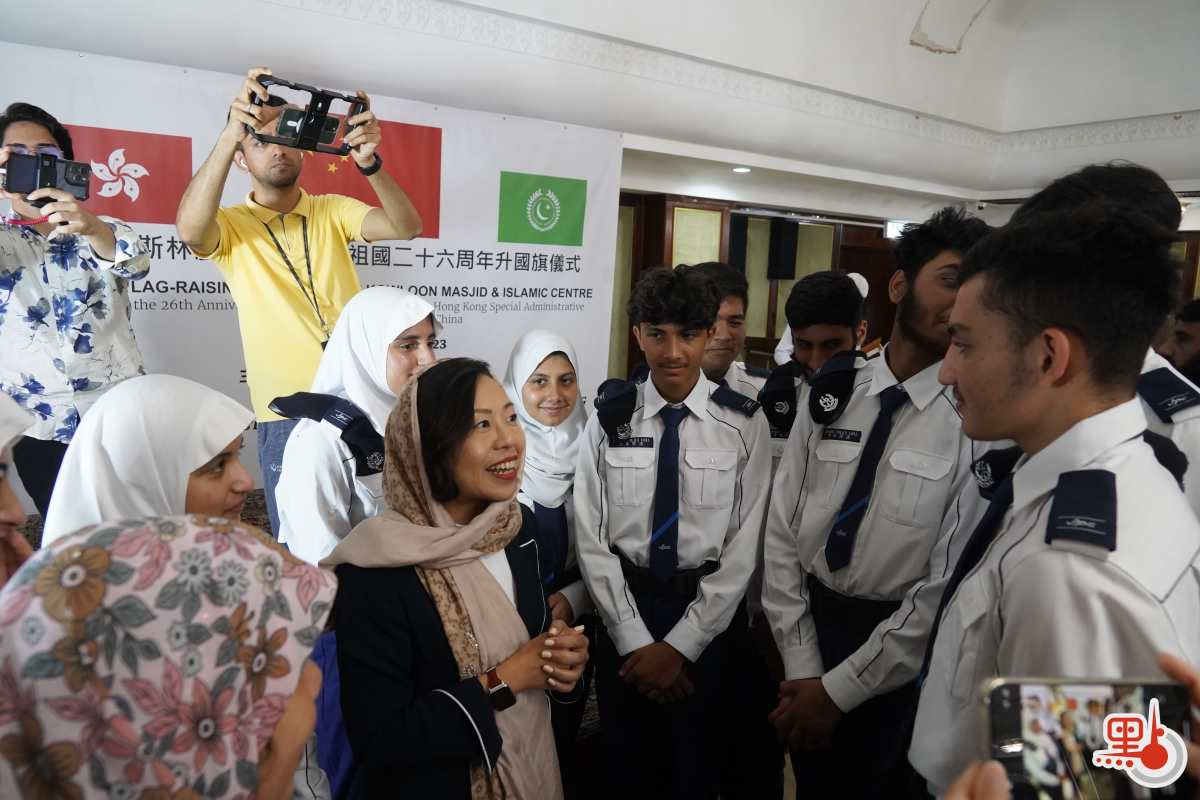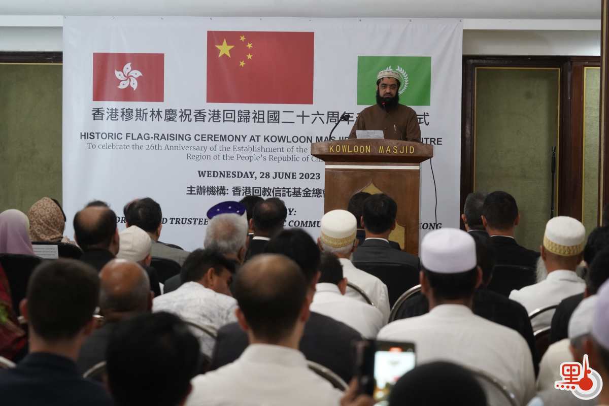 【點新聞報道】香港回教信託基金總會今日(28日)上午舉辦「香港穆斯林慶祝香港回歸祖國26周年升國旗儀式」,這也是香港伊斯蘭教團體首次在九龍清真寺舉行升國旗慶回歸活動,特區政府民政及青年事務局局長麥美娟出席活動。