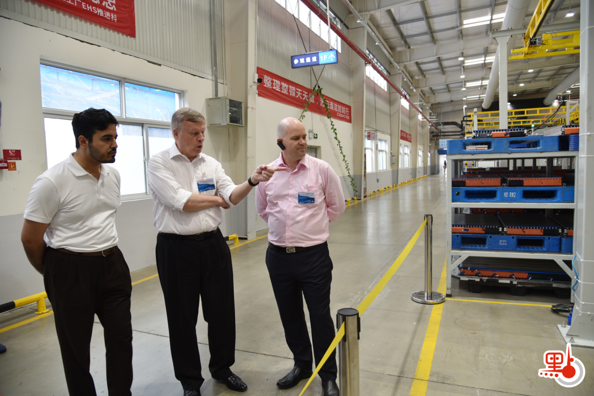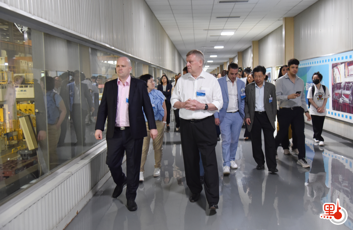 6月28日,參訪團繼續在西安展開交流參訪。當天上午,參訪團一行剛剛踏入西安比亞迪乘用車參觀通道,就被眼前的一幕所吸引。沒有傳統車間的火星四濺和煙塵繚繞,沒有叮叮噹噹響徹耳際的喧鬧,只見現代化全自動生產流水線上,一個個汽車零部件經過衝壓、焊接和塗裝等工藝後進入總裝,隨後機械人揮舞着機械臂與工人們協同作業。60秒後,一輛新能源汽車駛出了生產線。