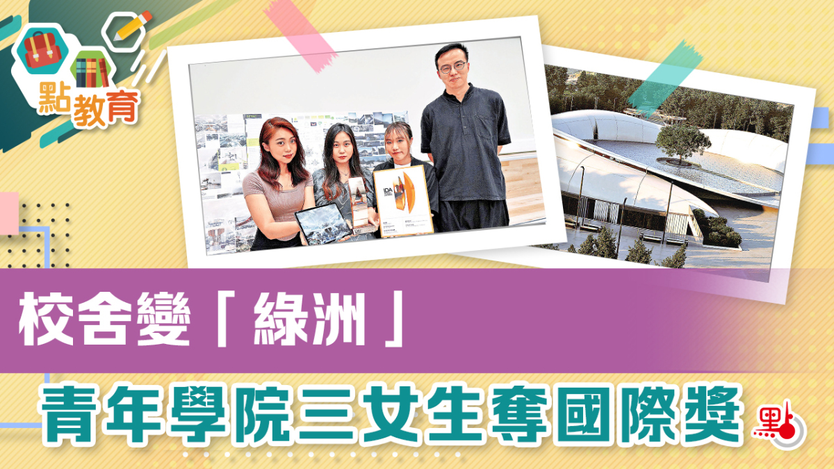 學校是「一試定生死」的英雄地,還是立定志向的起跑線?三名青年學院職專文憑(室內與展覽設計)的女生就形容學校是「成長歷程中的綠洲」。三人早前參與國際設計界備受認可的「IDA國際設計大獎」,為青年學院(邱子文)校園改造校舍建築,其名為「The Sprout(發芽)」的作品,最終勇奪比賽專業組建築項目學院組別的金獎,揚威全球。