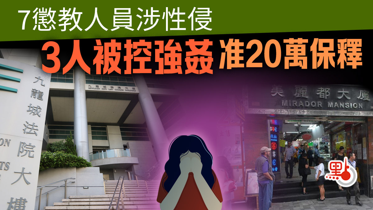 3名男被告為黃朝豐(23歲)、鍾皓林(27歲)及麥潤良(31歲),報稱為懲教署二級懲教助理,同被控1項強姦罪。控罪指,他們於2023年7月9日,在九龍尖沙咀彌敦道美麗都大廈某室強姦女子X。