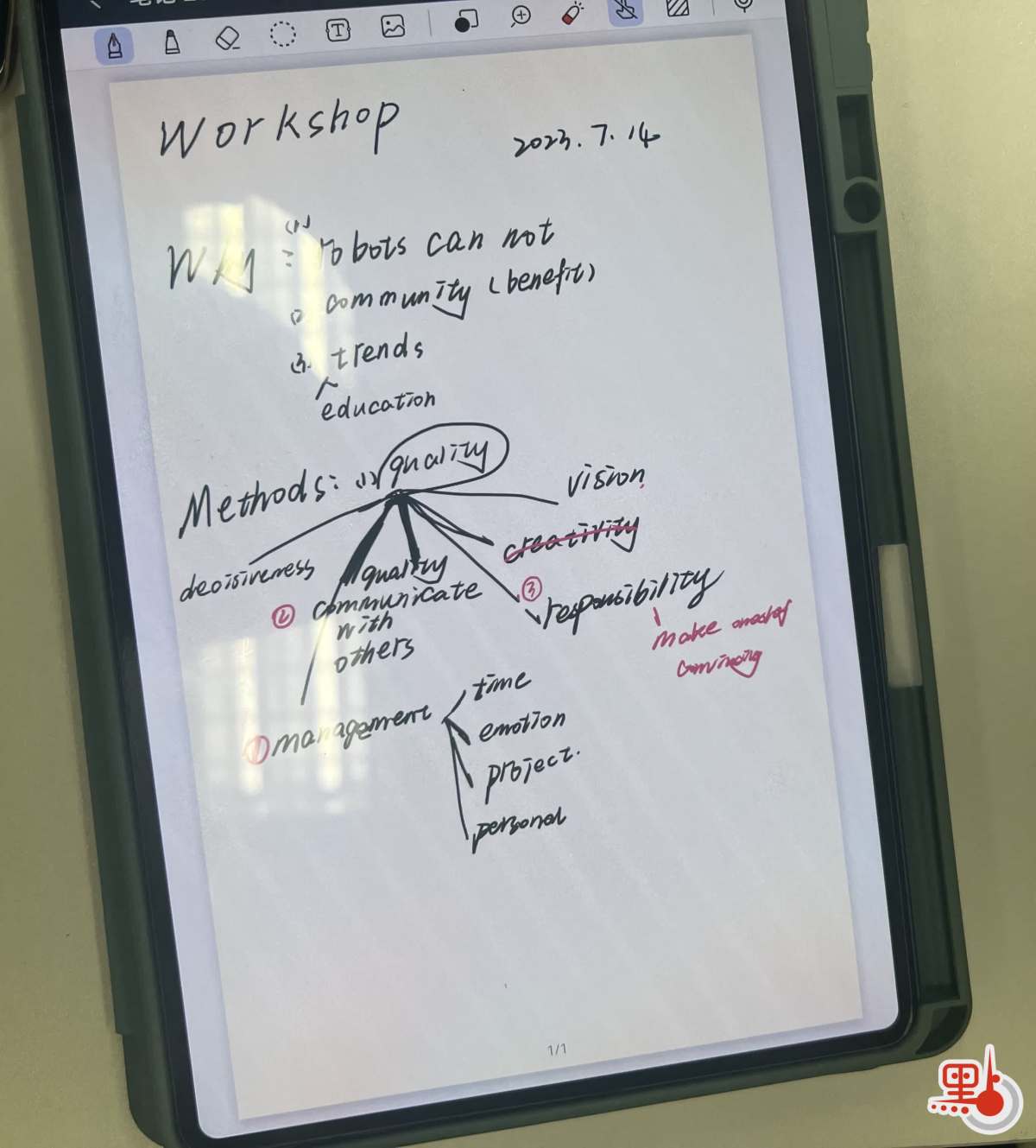 隨後學生們圍繞「什麼是有效領導力」「如何形成領導力」「領導力可以用來做什麼」展開熱烈討論。大家分成5個小組,用圖紙總結想法。同學們提出管理能力、組織力、決策力、大局觀、溝通能力、激情、平衡能力、決心等多個要素。