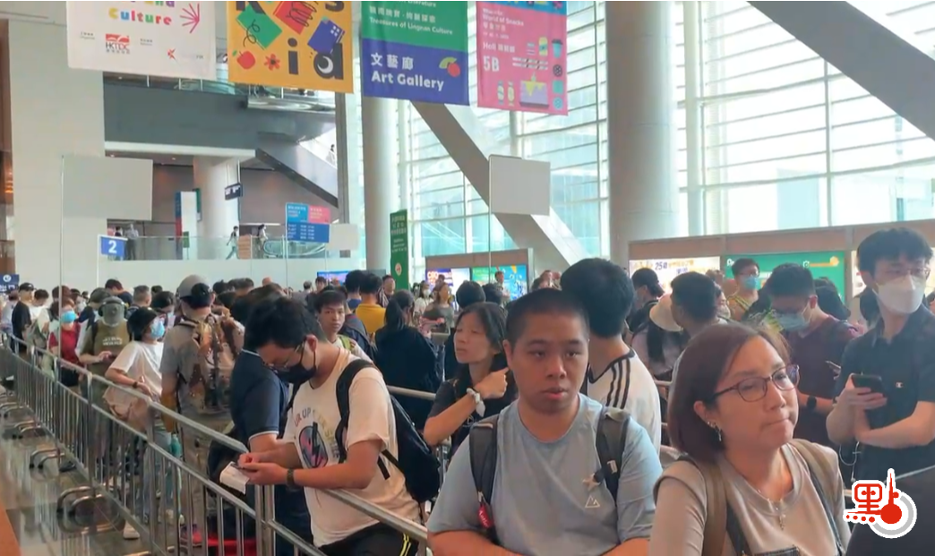 【點新聞報道】第33屆香港書展今日(19日)起一連7日在會議展覽中心舉行,今早10時前開門已有市民排長龍等待入場,還有人帶備「車仔」準備入場「掃貨」。貿發局副總裁張淑芬在一個電台節目表示,今年是香港復常後首個書展,相信會有更多市民及旅客參與,會做好人流管理。
