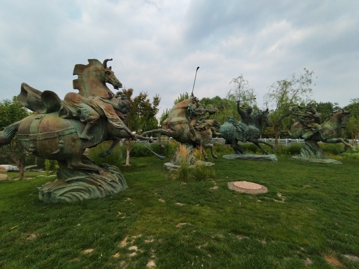 據介紹,北京亮馬河由西向東從北護城河匯入壩河,曾叫晾馬河,是古時商隊進城前清洗晾曬馬匹之地。「選擇在這裏展示馬球藝術正好印證了這段歷史。」黃劍說,馬球運動始於東漢而盛於唐,後來更風靡全世界,是中外文化交流的最好見證,基於此她在創作時選擇了以唐代的人物故事為主線。如今亮馬河將沿線各國使館、國際酒店、百貨商場、潮流商街等串聯在一起,形成了獨具特色的京城國際化商圈。