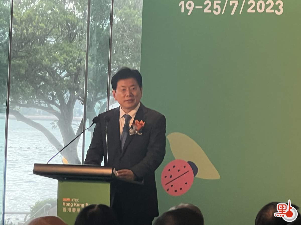 中央宣傳部副部長張建春致辭時表示,香港回歸26年以來,走上了和國家共同發展的道路。在今年香港書展,欣喜的看到香港出版界牢記總書記囑託,堅持文化自立自強,推出一大批港版優質圖書,品種不斷增多,質量提升,展銷世界各國,彰顯了香港出版界實力,也堅定了各界對香港未來信心。未來五年,是香港出版界展現新動能,實現新發展的關鍵期,期盼香港與內地業界開展更多交流。