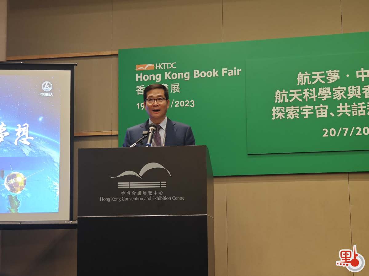 聯合出版集團助理總裁應中偉致辭時指出,香港書展自90年起舉辦,是亞洲最大規模的書展之一,即便疫情爆發,參展商數目依然眾多,入場人次維持80萬左右,集團一直以來善用香港書展這個平台傳播中國聲音。他形容,航天夢是中國科技夢的重要組成部分,仰望星空更是歷代中國人的夢想,香港的參與至關重要,寄語青少年透過活動認識中國航天技術的發展,為人類文明、國家發展作出更大貢獻。