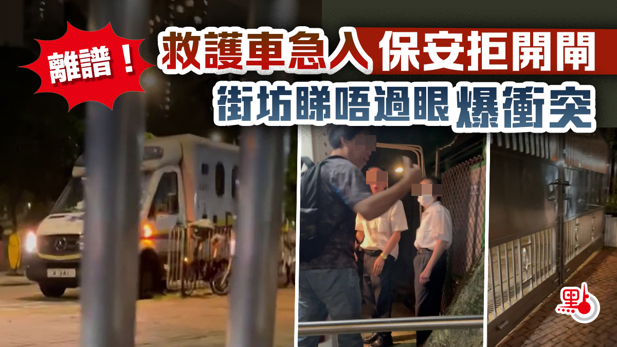 【點新聞報道】人命關天救人如救火,救護車出動即意味着有個案急需救援。日前將軍澳一屋苑的保安懷疑拒開閘,要求救護車兜路進入,在場看不過眼的街坊勸籲保安員開閘時,雙方一度爆發口角,粗口橫飛。