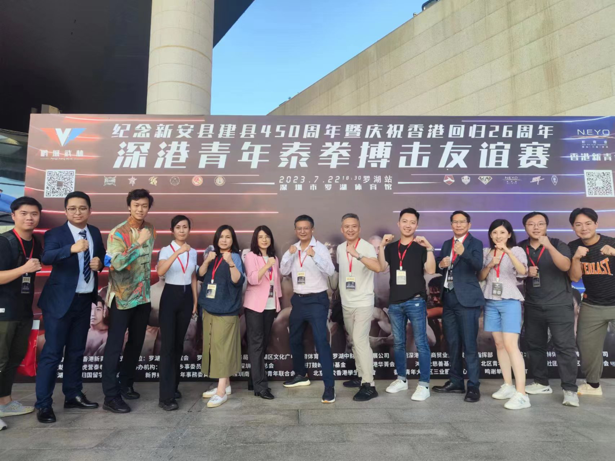 適逢香港回歸祖國26周年暨新安縣建縣450周年,為推動深港體育交流,希望通過體育精神,競技體育的魅力進一步增強兩地青年的凝聚力。深圳市羅湖區委常委、統戰部部長黃劍峰致辭,香港立法會陳月明議員、陳穎欣議員、李梓敬議員、朱國強議員及姚柏良議員蒞臨主禮並講話,本次賽事主辦機構香港新青會主席張然表示,深港兩地20多名優秀青年拳手同台競技,互相切磋交流,這為將來兩地青年舉辦更多賽事活動開了一個好頭。用體育運動來凝聚力量,加強深港兩地青年交流,推動兩地融合是未來重要的工作目標。