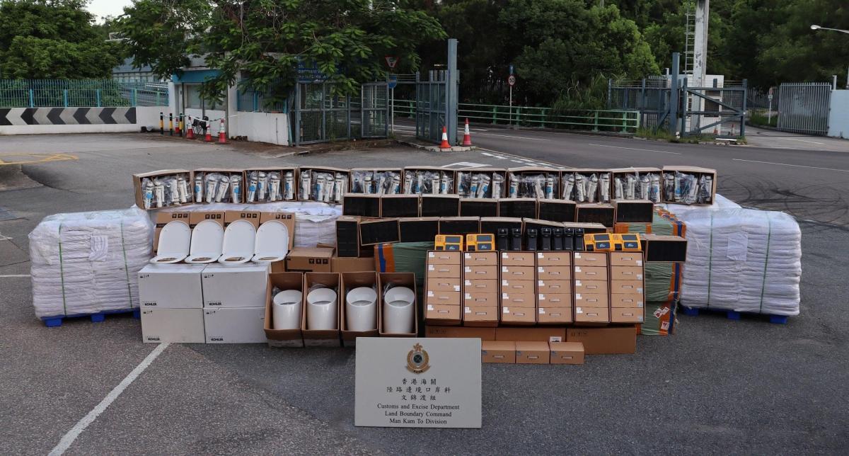 【點新聞報道】香港海關昨日(24日)於文錦渡管制站檢獲大批懷疑走私物品,包括約3100部智能終端機、約1.7萬件金屬配件、約5200件雨擋及約700件浴室潔具,估計市值共約750萬元。