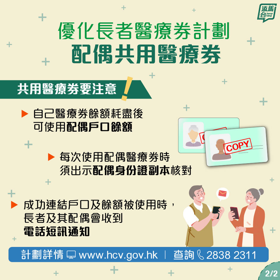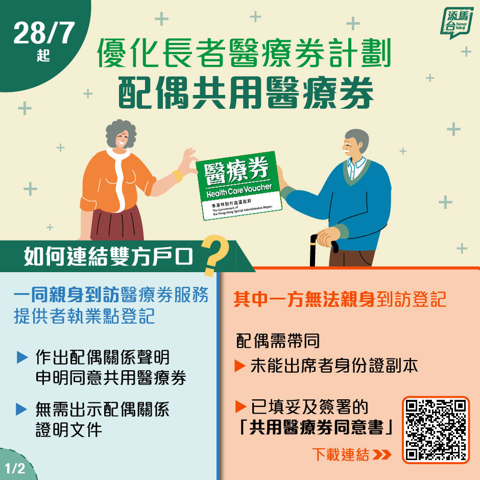 【點新聞報道】衞生署公布,合資格的香港長者本周五(28日)起可與其配偶共用長者醫療券。政府提醒,由本周五起,本港現時逾95萬名65歲或以上的已婚人士,可受惠於配偶共用醫療券的新安排。