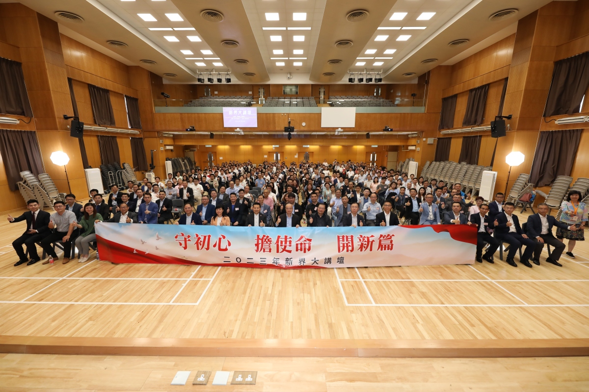【點新聞報道】2023年第二期新界大講壇昨日(26日)開壇,以「守初心、擔使命、開新篇」為主題,邀請全國港澳研究會副會長譚耀宗進行主題分享。大講壇由新界社團聯會理事長譚鎮國主持,出席的嘉賓包括港區全國人大代表陳勇、黃冰芬等愛國愛港人士近300人。
