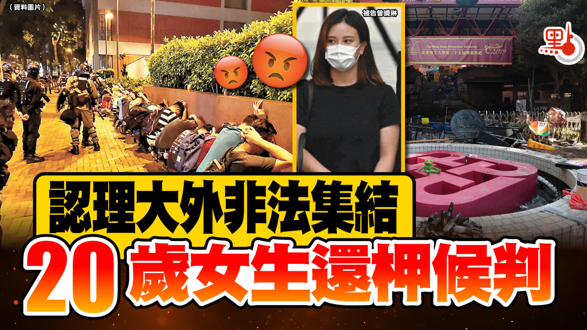 2019年11月,黑暴在理大校園外打砸燒攻擊警方防線,警方在尖沙嘴一帶拘捕多人,其中20人被控非法集結罪,昨日在西九龍裁判法院(暫代區院)開審。其中一名20歲女學生審前認罪,她被還柙至8月11日判刑,其餘19人則開始受審。