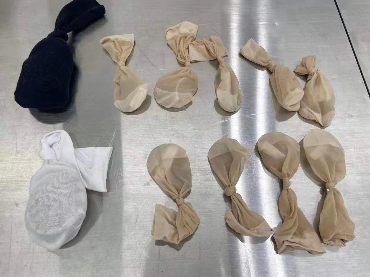日前,皇崗海關關員在福田口岸發現一名進境旅客過關時步履匆忙、眼神躲閃,隨即對該名旅客進行攔截檢查。經檢查,在其褲袋中查獲用棉襪及絲襪包裹的活體蛇14條。目前,該批活體蛇已移交相關部門處理。