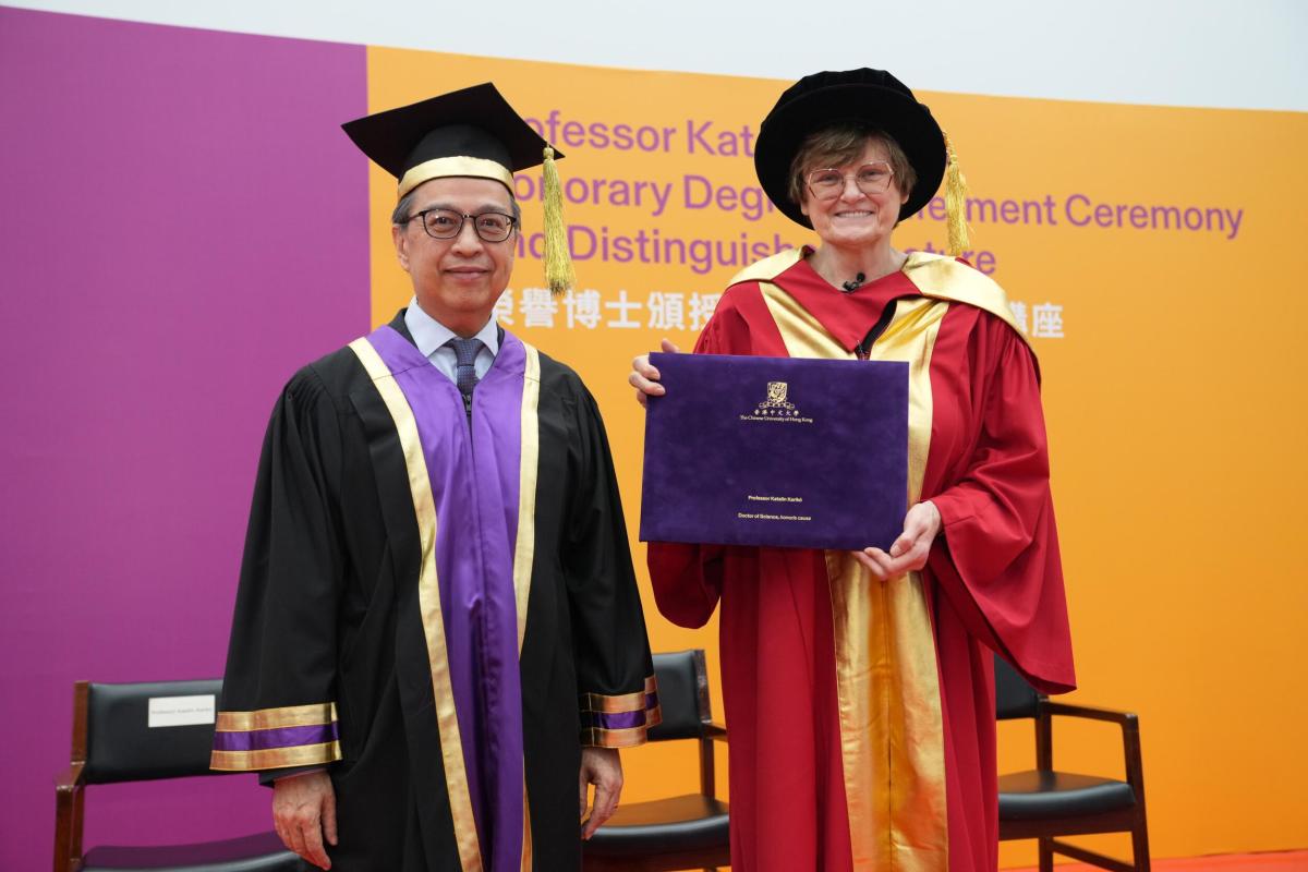 Kariko教授開啟了預防及治療人類疾病的大門,成就蜚然,有關信使核糖核酸的研究更被認為是二十一世紀最重要的科學發現之一。信使核糖核酸新冠疫苗不但有效對抗新型冠狀病毒病,亦同時為遏制全球疫情奠定了重要的基礎,並為未來治愈其他疾病帶來希望。Kariko教授曾獲得多項國際科學獎項和榮譽,包括唐獎、生命科學突破獎、富蘭克林研究所獎項、日本國際賞、泰國Mahidol王子醫學獎、德國未來獎及拉斯克臨床醫學獎等,並獲得多所大學頒授榮譽博士學位。中大亦頒授榮譽理學博士學位予Kariko教授,表揚她對生物醫學科研的重大貢獻。