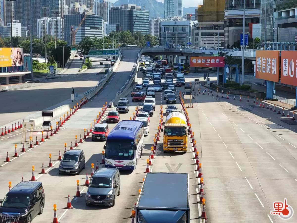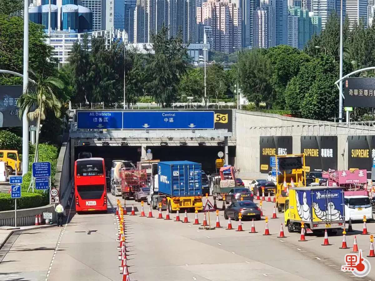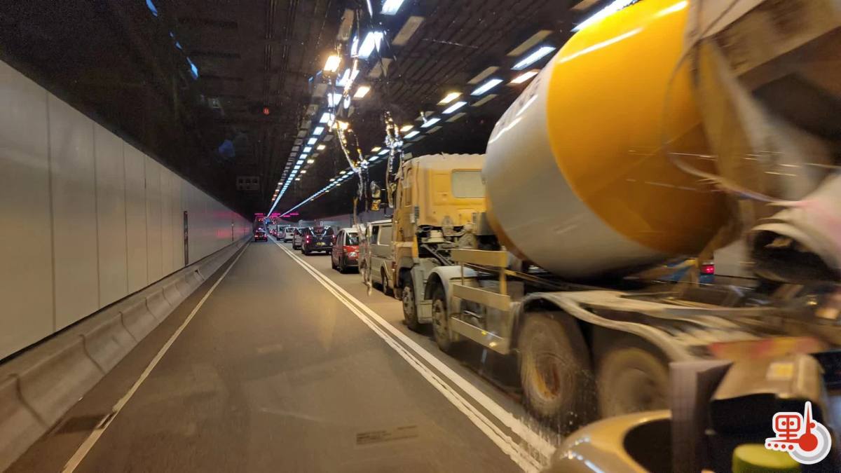 記者隨後由轉乘站乘巴士過海,只見隧道內仍然多車,部分大型車輛沿中線行駛,巴士使用的左線則維持暢順,期間更有私家車在雙白線的情況下截線至左線,引來同車的巴士司機的不滿。