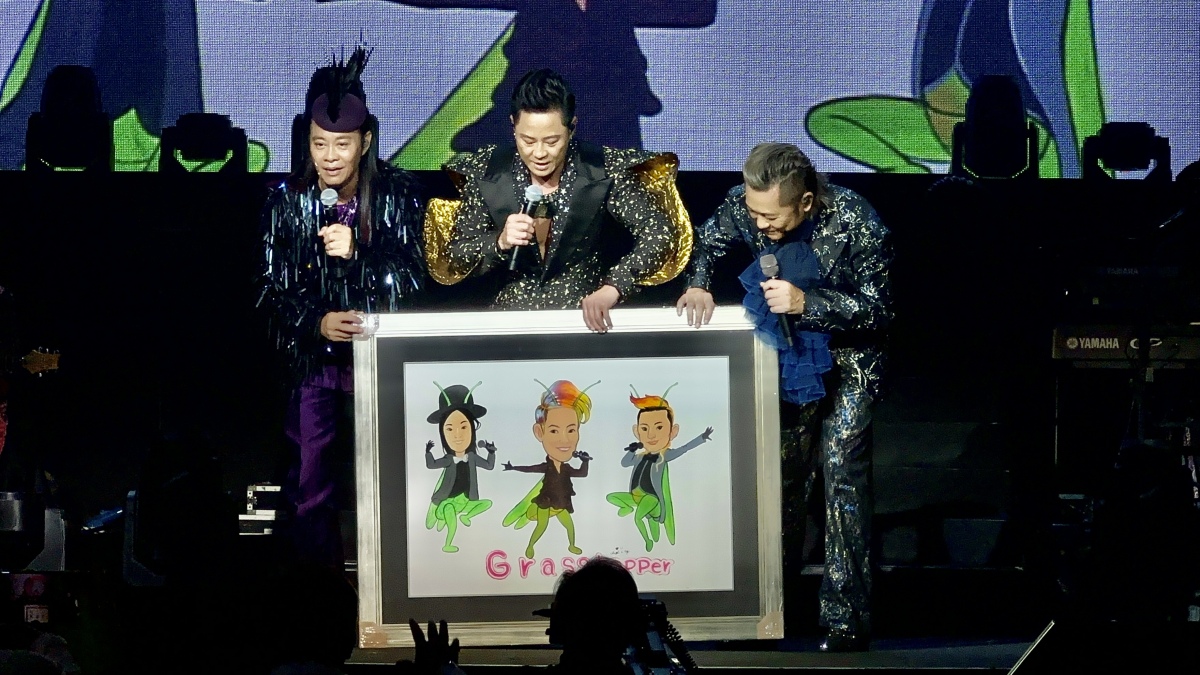 為答謝歌迷的投入表現,草蜢三子預備了多份演唱會Tee,送給現場觀眾。而平日有做開健身的蔡一傑,甚至將禮物拋到山頂觀眾位置。除了歌迷的支持,蔡一傑兩位來自泰國及美國的好友,專誠飛到雲頂撐場外,還送上繪畫了三子的巨型漫畫畫作給草蜢做禮物,問他畫作代表了什麼,來自美國的朋友解釋:「代表你哋永遠都係Grasshopper,永遠都係三位一體。」