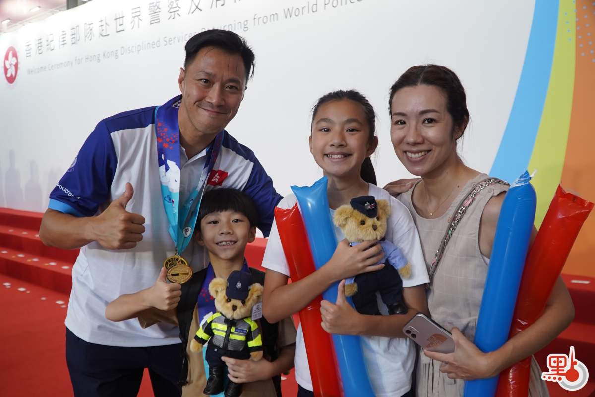 黎Sir11歲女兒繼承了他的「運動基因」,她向記者表示,爸爸平日會帶他們一起做運動,認為他在運動方面很厲害,很高興爸爸在比賽中摘得獎牌,會視爸爸是榜樣,學習他不放棄的精神。
