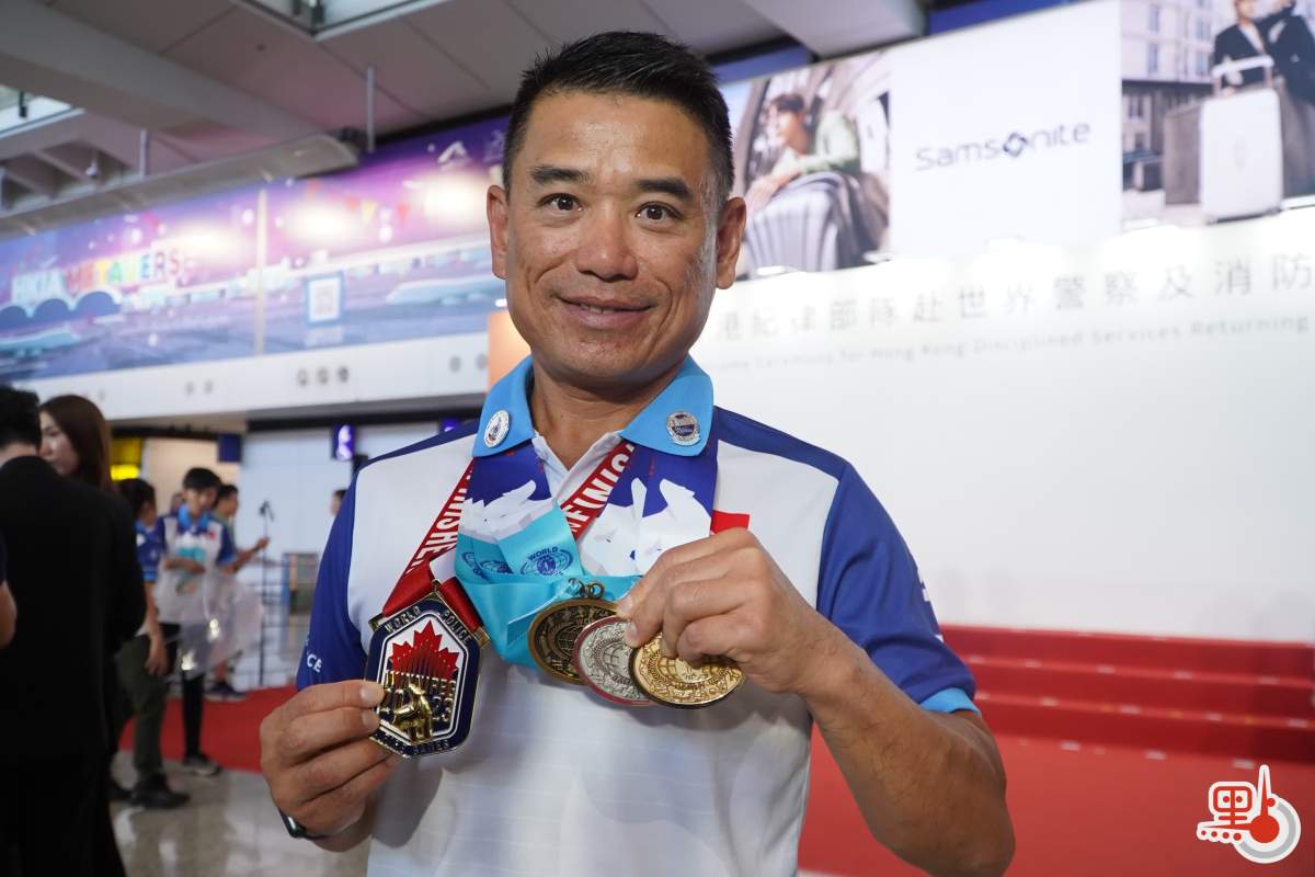 警隊人事服務及職員關係課總警司李仲華首次參加世警會,取得1金1銀1銅佳績,對本港紀律部隊在疫情後再參賽,與來自世界不同地方的選手共同競技感到高興。他透露,雖然平日都有訓練長跑,但知道有機會代表警隊參賽後,仍然在過去半年加強長跑和競走不同項目的訓練,希望提升能力,達到更高水平。李仲華坦言此行獲益良多,雖然他所在的田徑會24位同事年齡從21歲至50多歲,但大家相處融洽,且通過比賽增強對彼此的認識和了解,利於建立團隊精神,而正所謂「三人行,必有我師焉」,李Sir也從其他同事身上學到更多關於田徑的知識。此外,他特別提及運動精神也給警隊的工作帶來啟示,例如在日常訓練中亦講求紀律性,要堅持從不同方面提升自己水平等,與紀律部隊的工作是相輔相成的,警隊在日常工作中也需要通過不同方法提升效率,而警隊亦是一個團隊,團隊精神十分重要,要合力將整體表現做得更好。