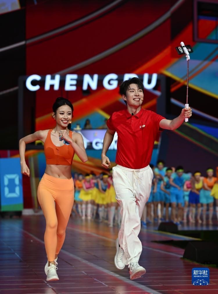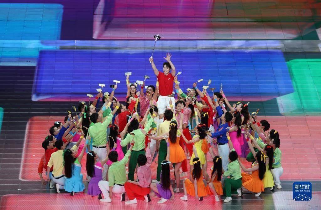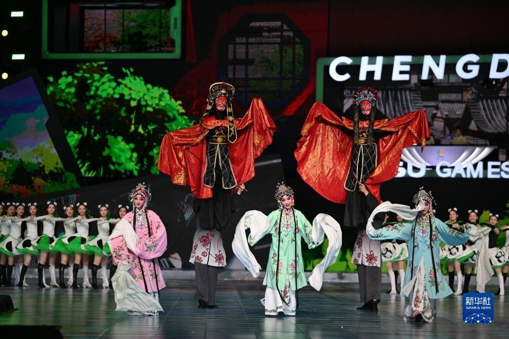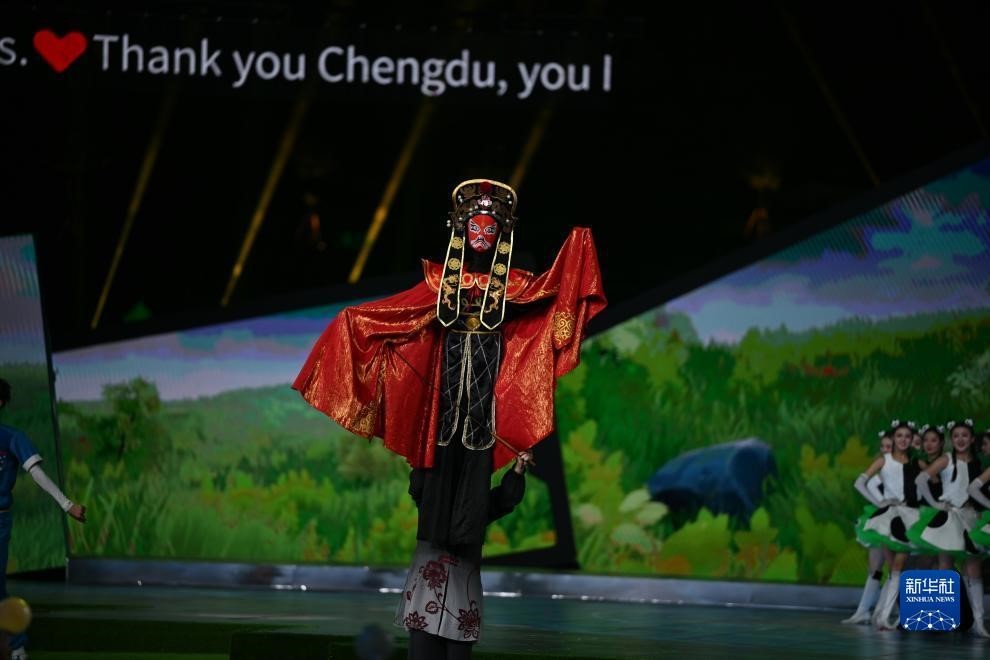 閉幕式表演中,有川劇青衣與說唱歌手以傳統與時尚混搭的形式對歌。有運動員形象的演員以走、跑、跳等運動元素,展現運動活力、青春風采。流行女團歌者與說唱俑造型打擊樂手讓古代與青春和鳴。