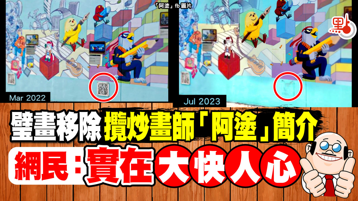 據信報報道,九龍公園「漫畫星光大道」一幅壁畫,移除了漫畫家「阿塗」的作者簡介和圖像,相關壁畫則獲保留。主辦機構「香港動漫畫聯會」回覆稱,因去年12月收到投訴,有參觀人士指內容不恰當,他們同意圖像「可能引發不必要的誤會或聯想」所以移除。