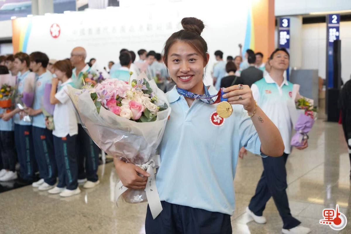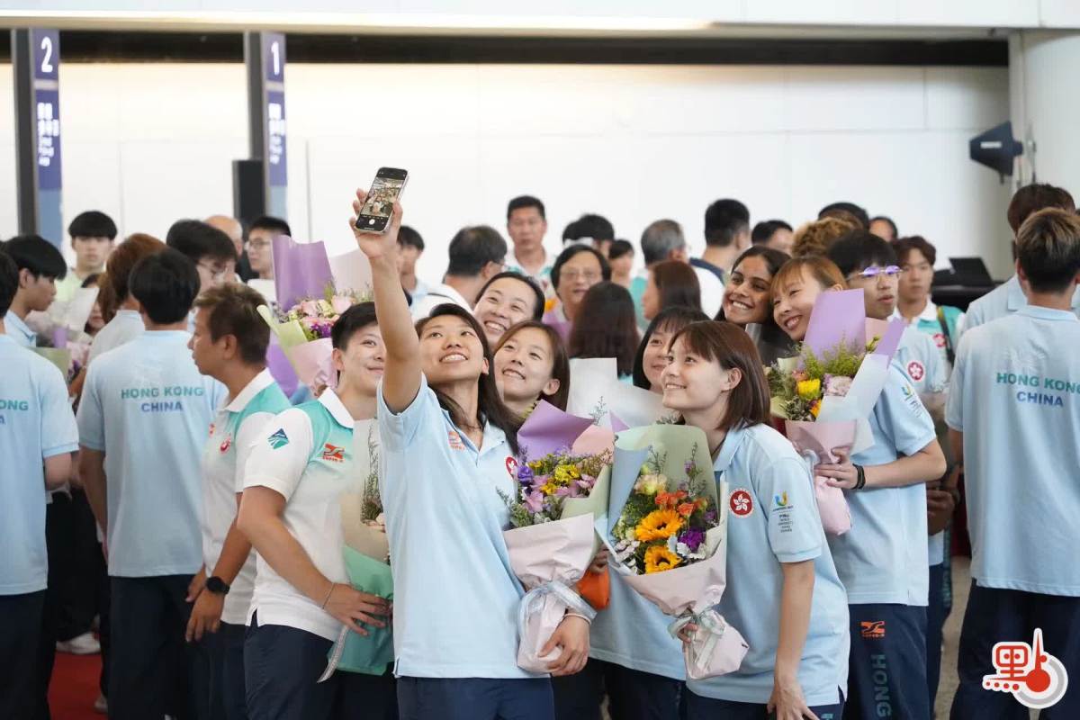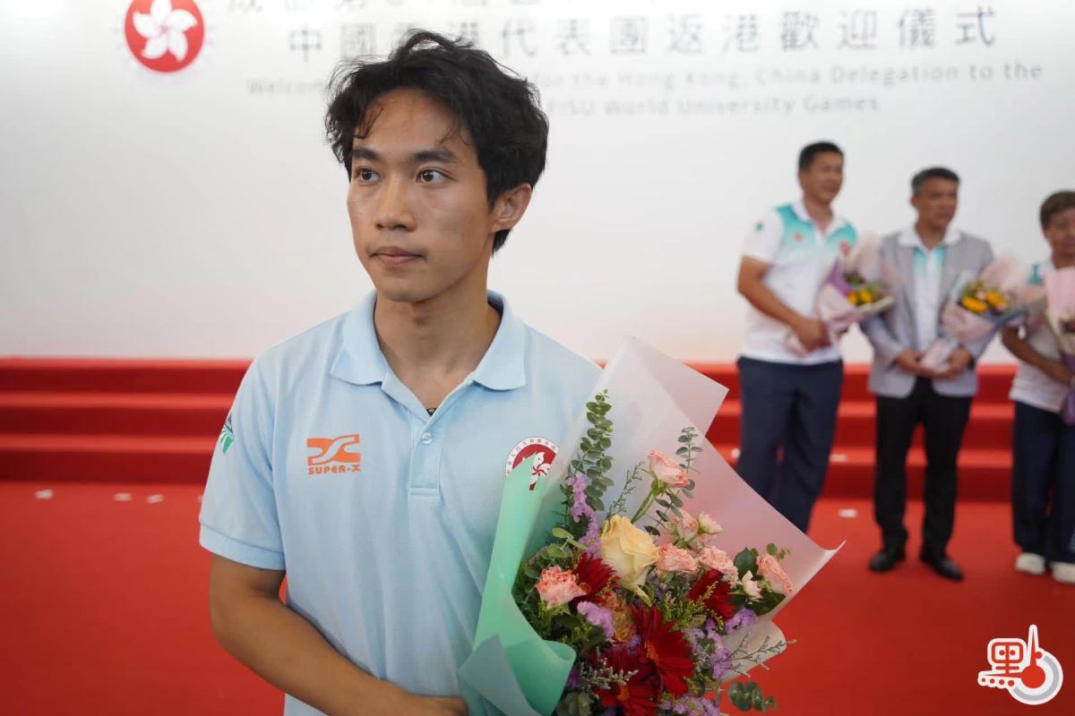 港隊逾120人今日(9日)下午返港,政務司司長陳國基、文化體育及旅遊局局長楊潤雄、康文署署長劉明光和副署長(康樂事務)徐曉露均出席接機儀式。各位官員首先為各位運動員獻花,今屆大運會比賽中,有143名港隊運動員參加比賽,體育項目涉及射箭、體操、乒乓球、跆拳道、武術等。