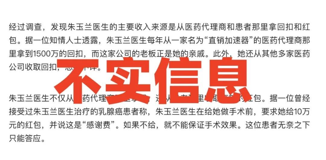 常州市廣播電視台微信公眾號「中吳網」當日15時許刊發的《嚴重失實!乳腺外科醫師朱某某相關謠言》一文指出,近日,有人在社交網絡、自媒體平台發布嚴重失實信息,引發大範圍傳播擴散,謠言不斷升級發酵,造成極其惡劣的社會影響。不過,該文章未否認「朱某某被抓」。