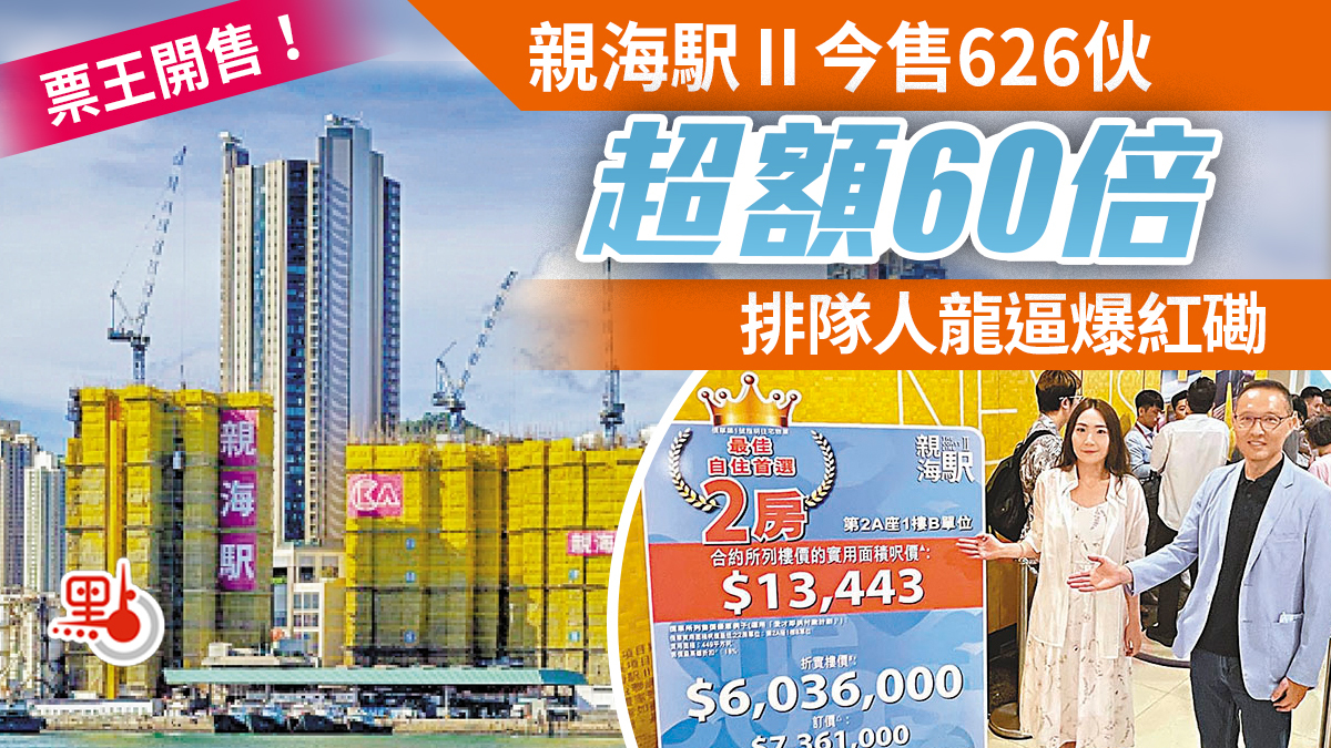 登上本港新盤票王寶座的油塘親海駅Ⅱ,最終認購登記數量約3.8萬票,以今日(12日)開售626個單位計算,超額約60倍。