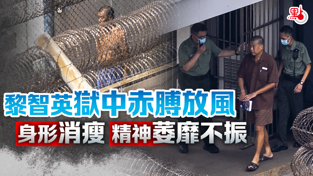 【點新聞報道】官司纏身的亂港黑手、壹傳媒創辦人黎智英,因身涉非法集結及欺詐等多罪,目前正於赤柱監獄服刑。近日,《美聯社》拍得多張黎智英在獄中的照片,其中一張遠距離拍攝到他在囚室外的散步情況。不知道是否近日天氣極端酷熱,加上監獄沒有冷氣,照片可見,黎智英身穿藍色短褲,脫去上衣,半身赤祼「頭耷耷」散步。