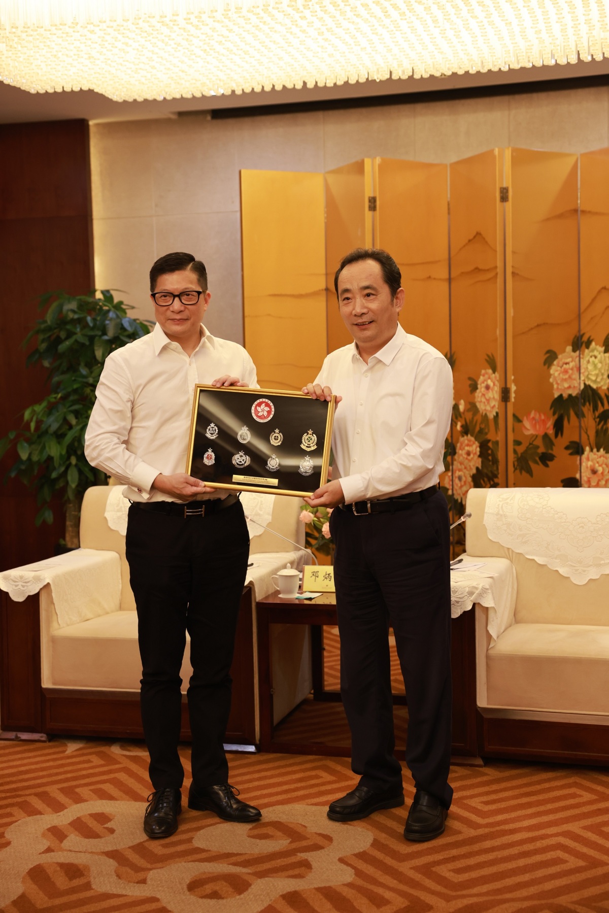 參訪團昨日(8月15日)與陝西省省委常委、統戰部部長李明遠會面,「保安局青少年制服團隊領袖論壇」主席鄭翔玲亦有列席。鄧炳強感謝他們全力支持和協調參訪團各項安排,他說豐富的行程令青年學員獲益良多,亦對陝西省世界級的歷史名勝古蹟留下深刻印象,深深體會國家對保育和傳承文化遺產的重視和中華民族源遠流長的歷史。