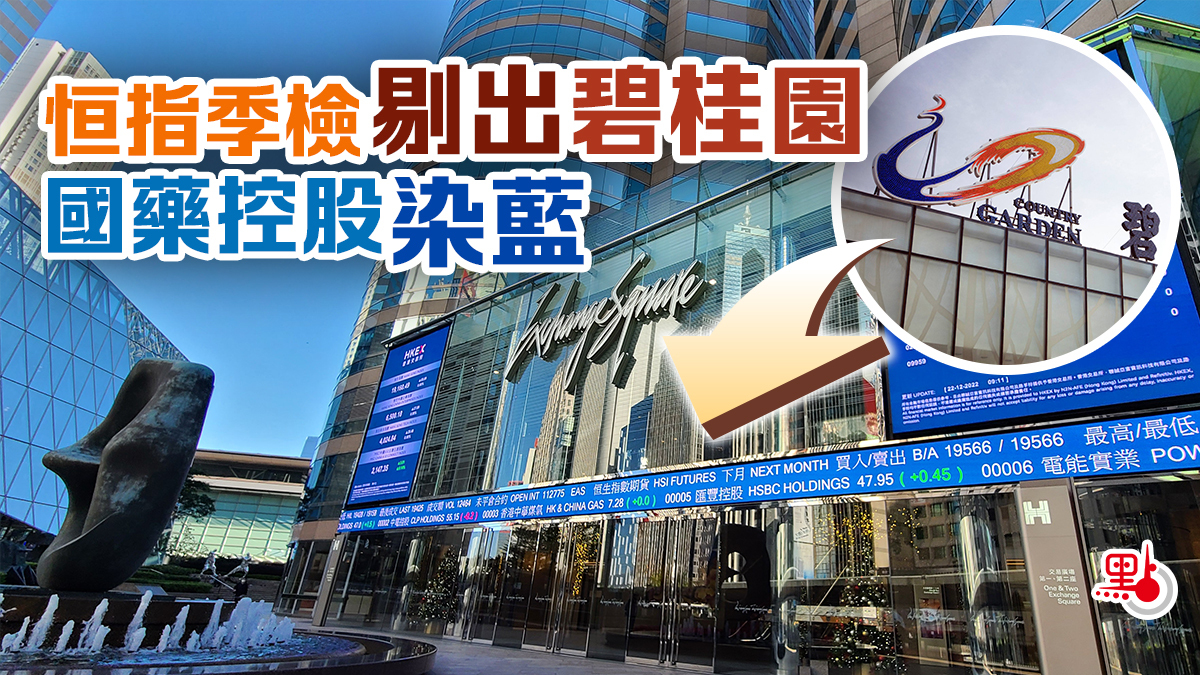 【點新聞報道】恒生指數有限公司今天(18日)宣布,將國藥控股納入恒生指數,剔出碧桂園;將攜程集團納入恒生中國企業指數,剔出碧桂園服務;將東方甄選納入恒生科技指數,剔出瑞聲科技。所有變動將於2023年9月4日(星期一)起生效。