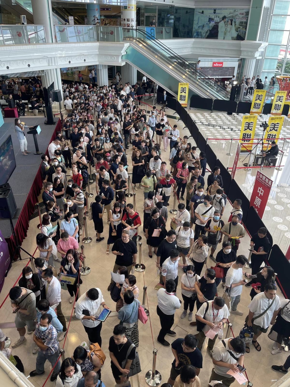 【點新聞報道】長實旗下油塘「親海駅I」首輪發售219伙,今日(20日)上午10時起進行抽籤及揀樓程序。有代理在社交平台分享相片可見,早於10時已有大批準買家在紅磡國際都會廣場等候抽籤,展銷廳人頭湧湧,人龍延伸至港鐵紅磡站外,場面熱鬧非凡。