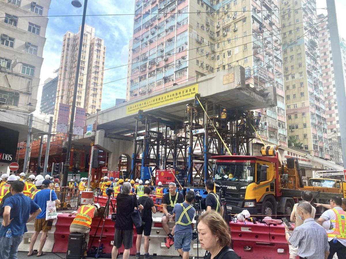 【點新聞報道】橫跨北角英皇道的糖水道行人天橋,昨晚11點起進行拆卸工程,封閉一段英皇道,原本當局預計今(20日)早8時解封,但工程至中午仍未完成。運輸署表示,拆卸工程仍然繼續,但英皇道近糖水道西行往銅鑼灣方向的慢線重開,多條經英皇道西行的巴士和專線小巴線,恢復行經原有路線,至於有關路段來回方向其餘行車線繼續封閉,糖水道一帶仍然實施臨時交通及運輸安排,介乎銅鑼灣信德街至鰂魚涌芬尼街的電車服務繼續暫停。