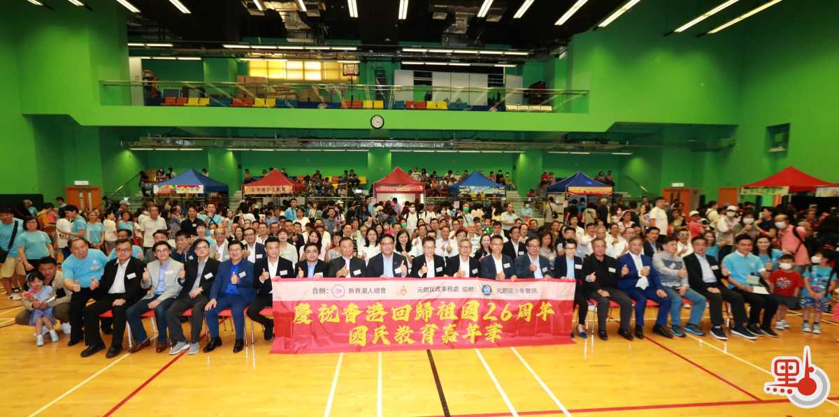 國民教育是價值觀教育的重要一環,新界潮人總會、元朗民政事務處今日(20日)下午在元朗區體育會賽馬會大樓綜合館合辦「慶祝香港回歸祖國26周年-國民教育嘉年華」。活動現場設有十個互動遊戲攤位, 吸引不少家長帶同小朋友來參加。有家長表示,十分認同國民教育對小朋友的重要性,強調身為中國人應該多些了解國家的歷史文化。