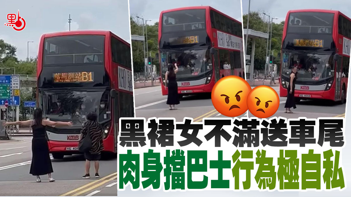 當巴士停下後,黑衣女子情緒甚為激動,指向巴士內的司機喝道:「你退後D企啦!」。現場有候車的乘客指罵黑衣女子的行為,有人要求報警,更爆粗問候她「你痴線架?」、「X街啦你」,期間黑衣女回頭望一望指罵她的市民,便繼續攔住巴士。