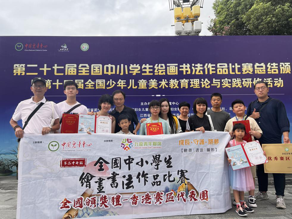 【點新聞報道】22日,由中國兒童中心主辦的「第二十七屆全國中小學生繪畫書法作品比賽」全國頒獎禮在江西武寧成功舉辦,香港賽區承辦機構九龍青年聯席會議應邀參加全國頒獎禮,並組織獲獎學生代表赴江西領獎。