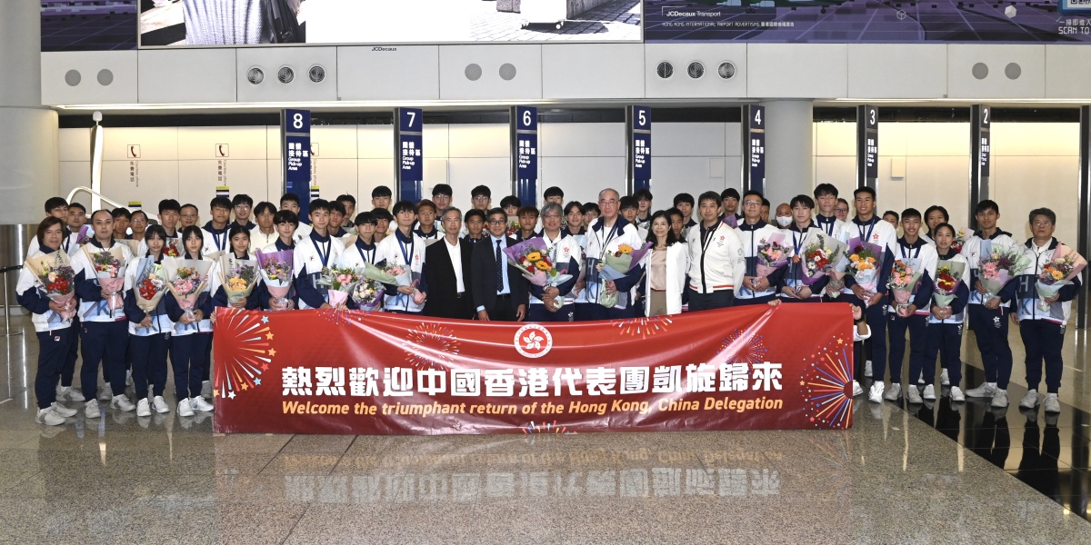 文化體育及旅遊局首席助理秘書長(體育及康樂)鄭青雲和康樂及文化事務署助理署長(康樂事務)張惠英到場迎接凱旋歸來的香港運動員。經過多日競賽,代表隊在各項賽事大放異彩,取得2金、6銀及14銅共22面獎牌。