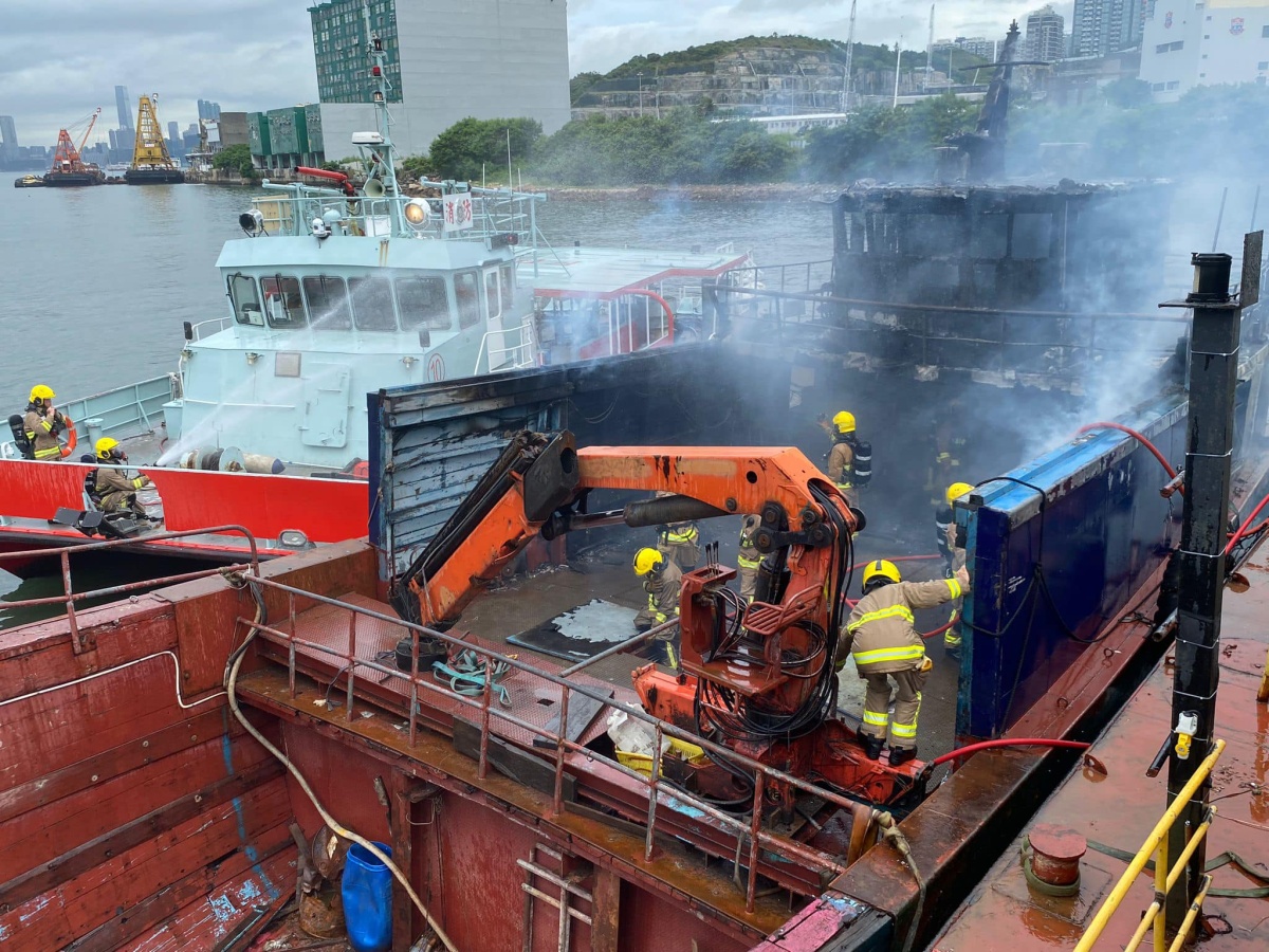 據東網引述碼頭負責人指,起火貨船已在上址停泊數日,主要運載英泥建材等前往長洲,今晨突然無故起火,幸船上無人。