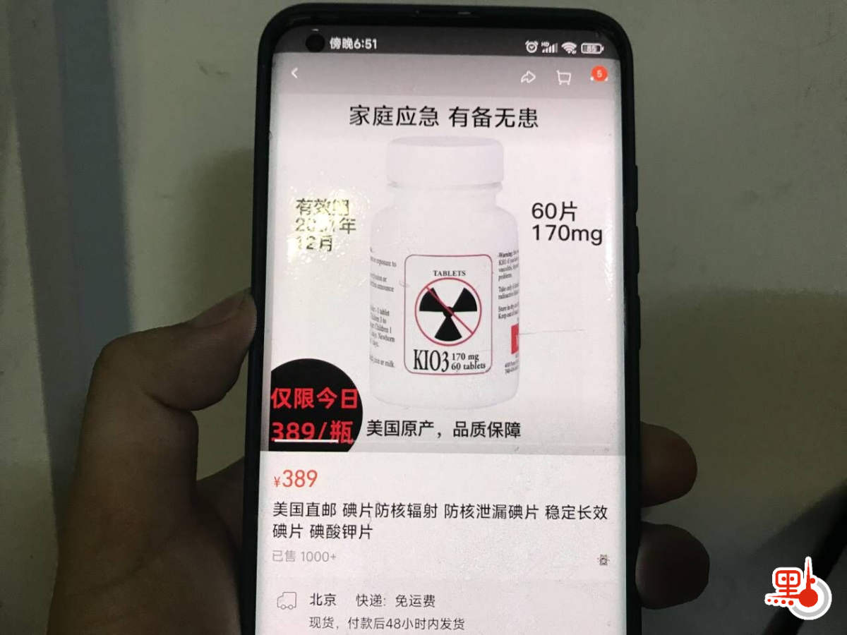 【點新聞報道】日本福島第一核電站啟動核污染水排海後,市民人心惶惶。在內地社交平台小紅書搜索 「預防核輻射」,有不少博主推薦碘化鉀的保健品或藥品,稱「盡早吃可以預防核輻射」。記者到內地網購平台同樣搜索「預防核輻射」,馬上出現不少碘化鉀片產品。其中一款標註美國直郵的「防核洩漏碘片」售價將近400元,已經銷售超過1000款。究竟使用碘化鉀產品能否預防核輻射?